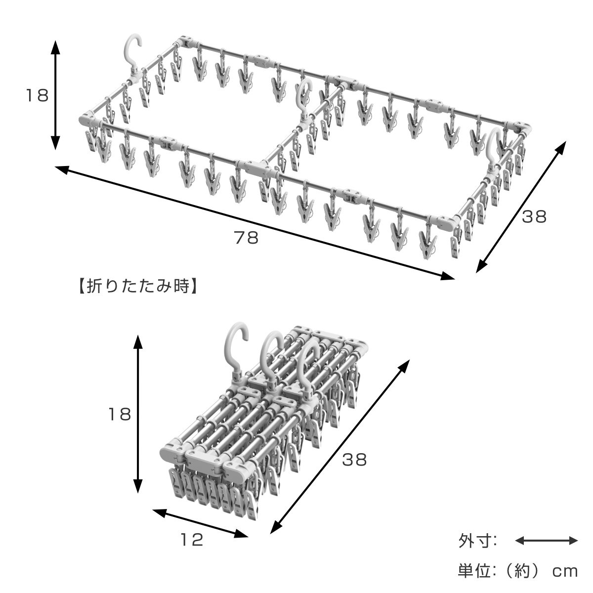 洗濯ハンガー 42ピンチ 伸縮アルミ角ハンガー 伸縮 折り畳み スライド ピンチハンガー アルミ
