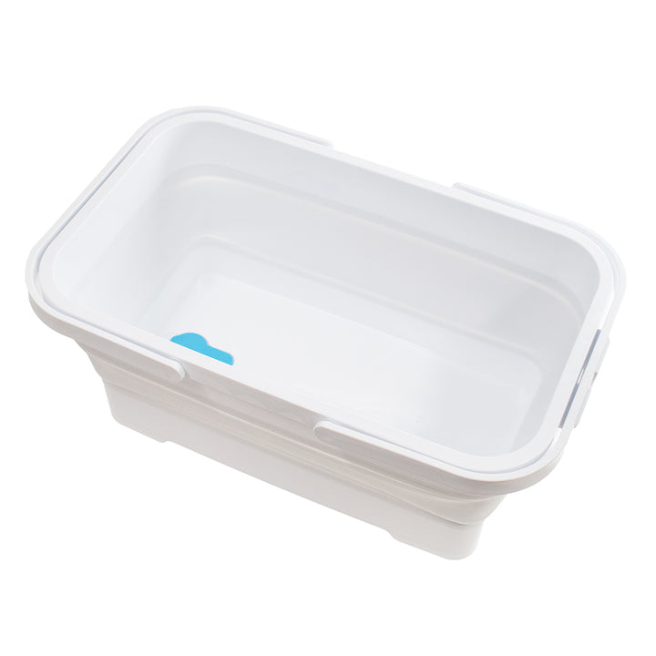 手洗いやつけ置き洗いに便利な折りたためるソフトタブです。使わないときは両サイドを押し込むだけで簡単にたためます。たたんだ際の厚さは約6.8cmとコンパクトなので、ちょっとした隙間があれば収納できます。