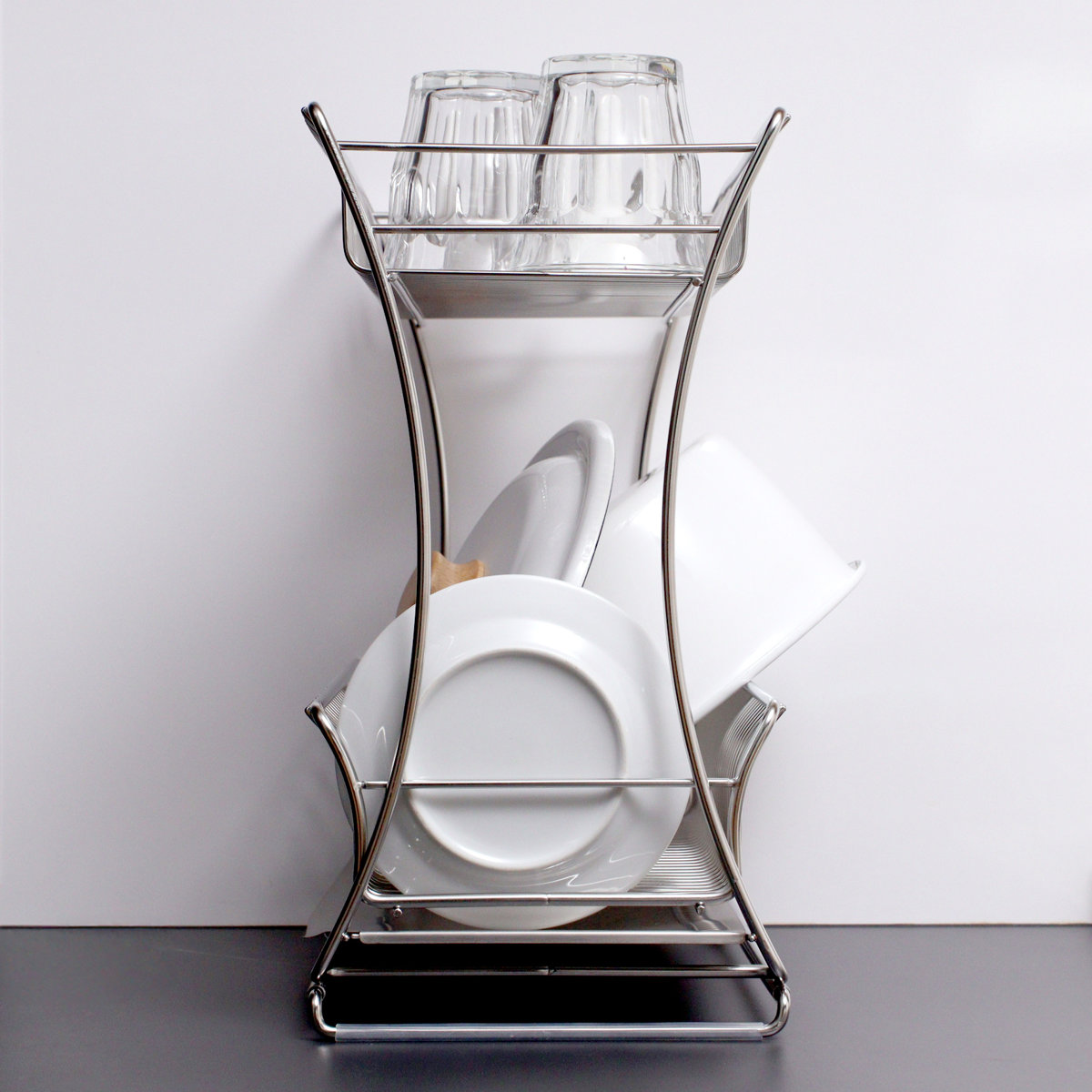 ゆるやかなカーブを描いた特殊な形状のワイヤーが、お皿のフチをしっかり支えてお皿が倒れにくいです。お皿を立てることで空気の通りが良くなり、乾きが速くなります。