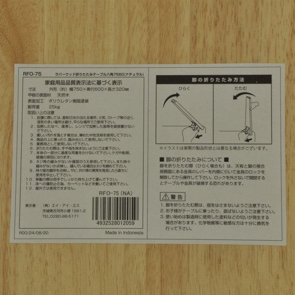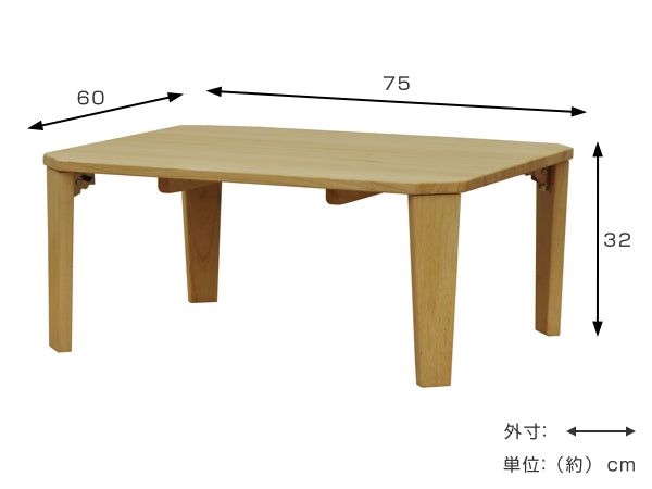 折りたたみ テーブル 幅75cm 八角 木製 天然木 長方形 折り畳み 机 つくえ センターテーブル 収納