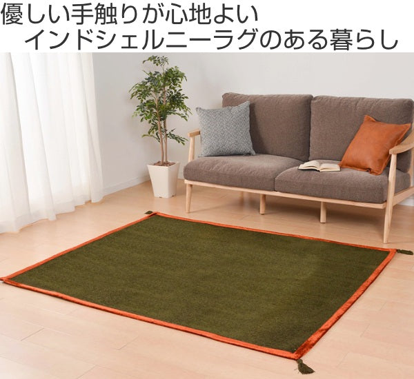 暖かみがある優しい風合いが特徴のシェルニー織りのラグです。シルクのような質感のレーヨン100%の生地は、柔らかな肌触りでオールシーズンお使いいただけます。