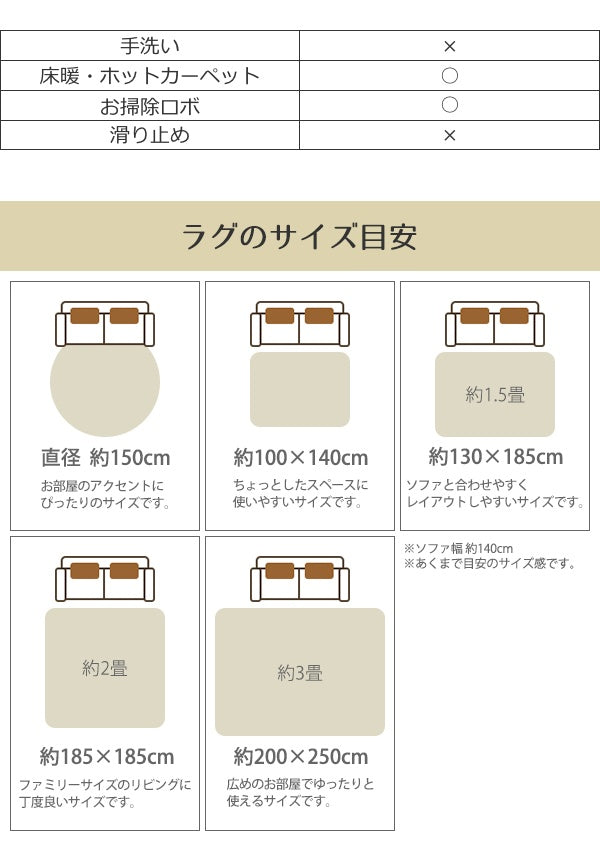 | サイズ | 約 幅185×奥行240(cm) ※タッセル部は含まない 厚さ:5mm |