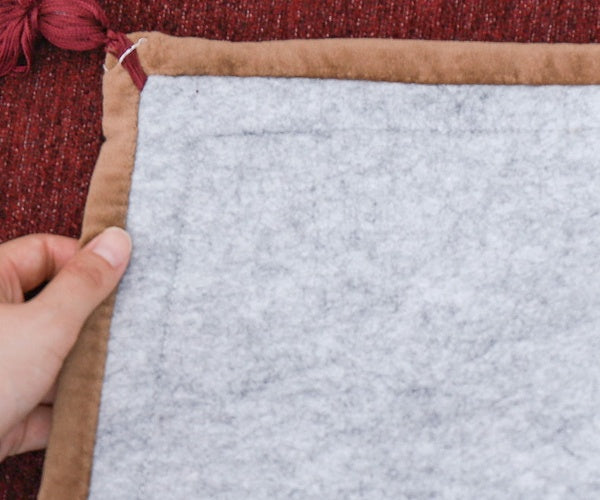 | 材質 | 表面:レーヨン100% 縁:綿100% 中材:ウレタンフォーム(3mm) 裏面:不織布 |