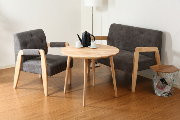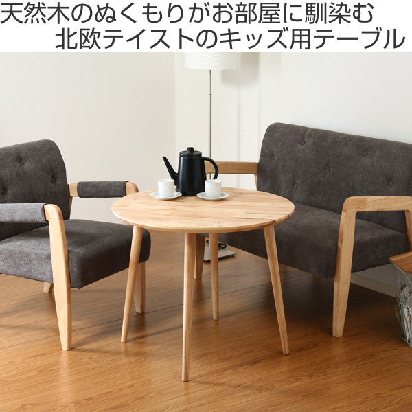 天然木ラバーウッドのぬくもりが感じられるラウンド型のキッズ用テーブルです。同シリーズのキッズソファと合わせて、お絵かきや絵本を読む時、お勉強の時間など様々な場面でお使いいただけます。