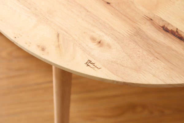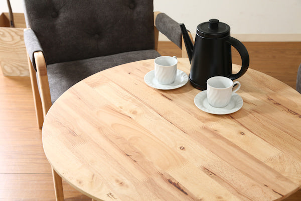 天板、脚部ともに角のない仕上がりになっており、安心してお使いいただけます。ほどよい光沢感を出すラッカー塗装が施され、木材の質感や木目を綺麗に浮かび上がらせています。