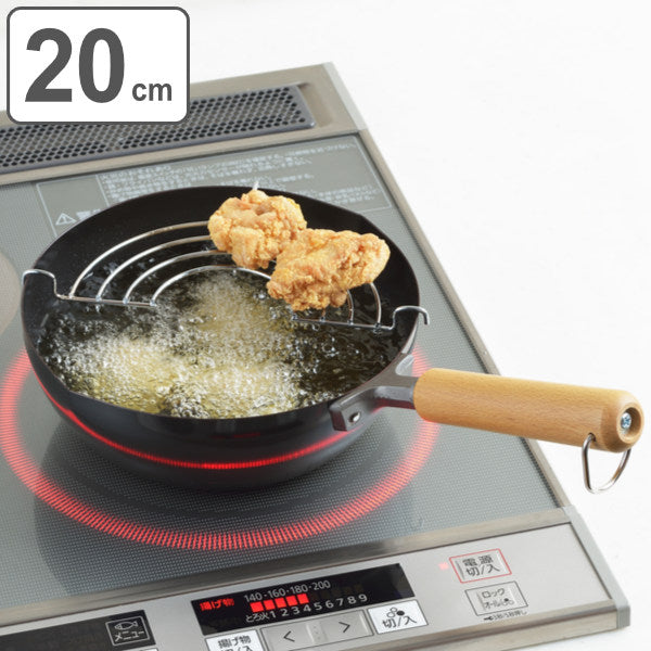 天ぷら鍋 20cm IH対応 鉄製 日本製 網付き NEWグルメパワー 木柄いため兼用天ぷら鍋20cm