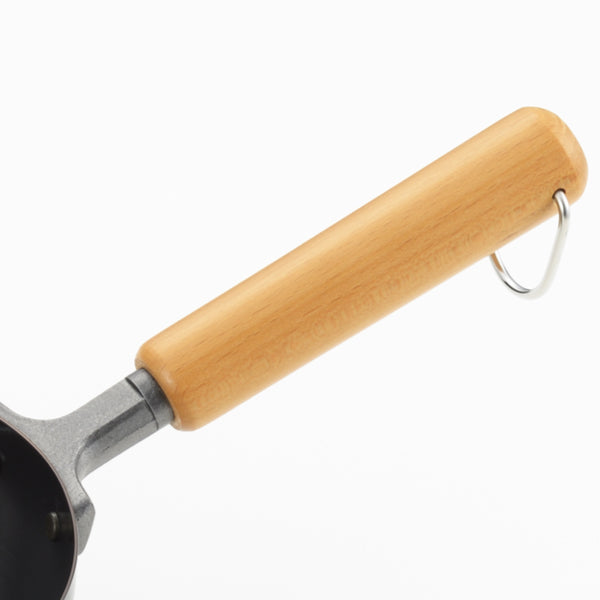 調理しやすい木柄 木柄なので調理中も熱くなりにくいです。フックが付いているので吊り下げ収納も可能です。 |