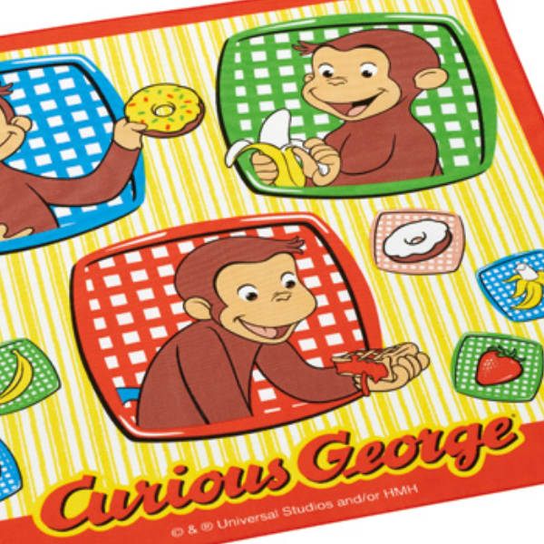 ●お弁当箱を包んだり、ランチョンマット(ナフキン)として使ったりできる、おさるのジョージのランチクロスです。