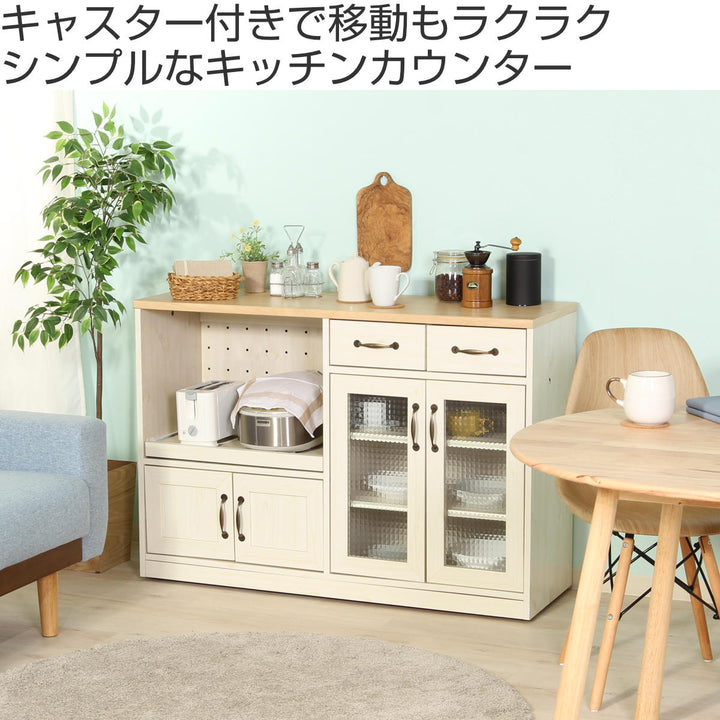 キッチンカウンター 幅118cm スライド棚 2口コンセント キャスター付