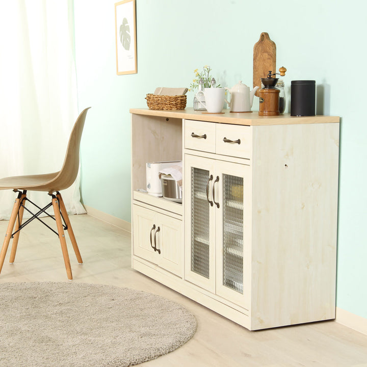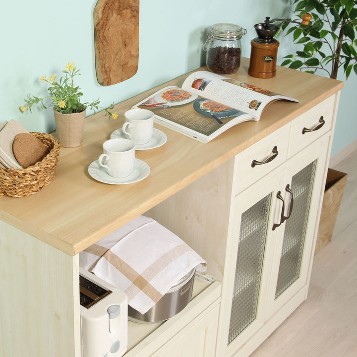 落ち着いた雰囲気のミディアムブラウンとホワイトウッドの2色のカラーからお選びいただけます。どんなテイストのお部屋にも良く馴染み、キッチンに収納力をプラスできます。