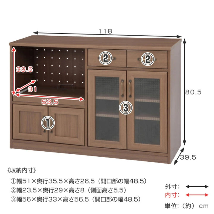 | サイズ | 約 幅118×奥行39.5×高さ82(cm) ※奥行は取っ手含まず |