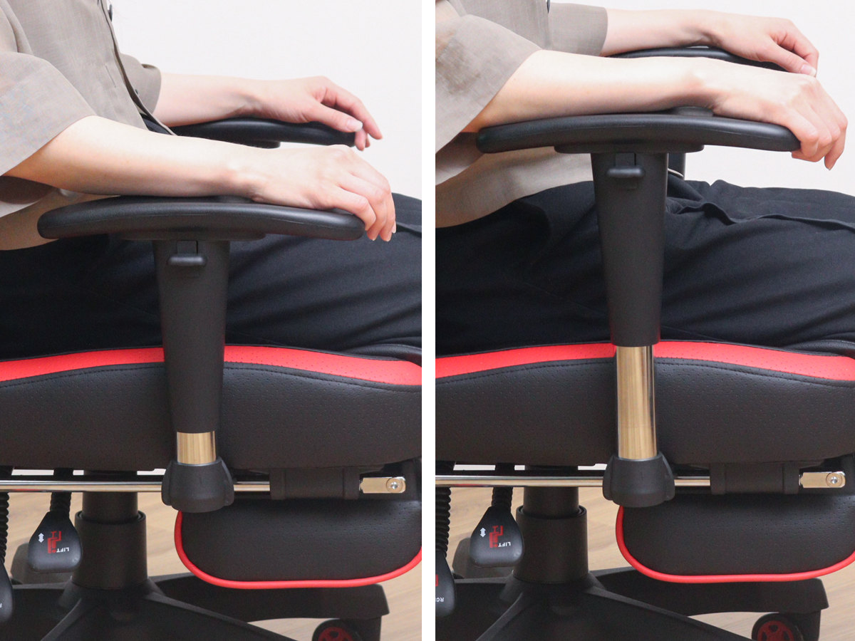 昇降可能なアームレストで肘を最適なポジションにキープできます。