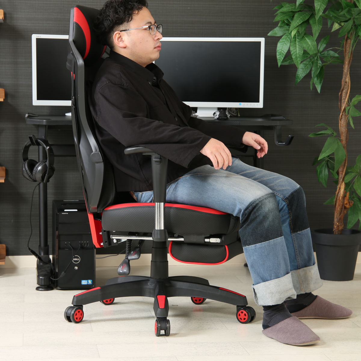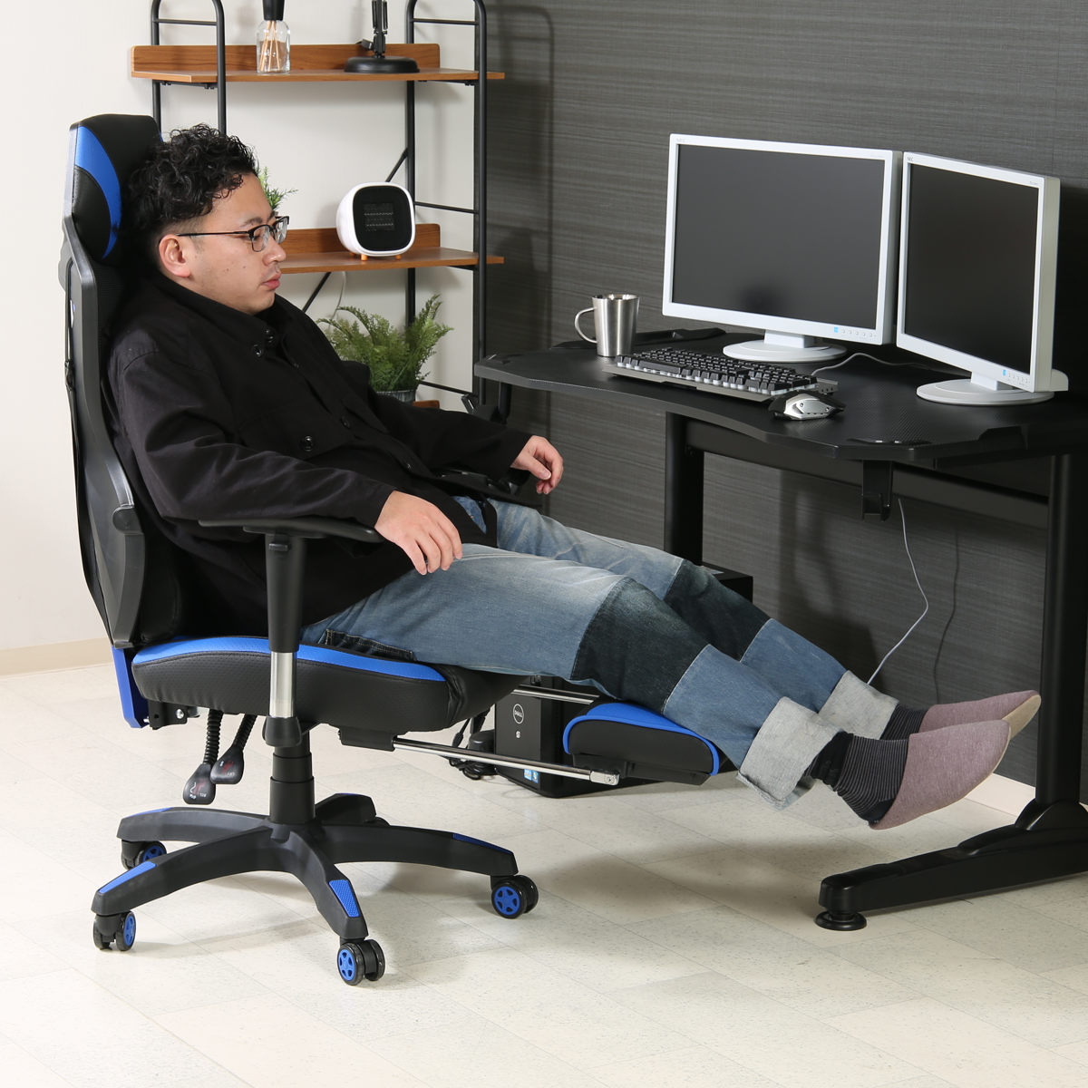 ゲームやデスクワークの合間や休憩時には足を伸ばして、全身をゆったり預けられます。
