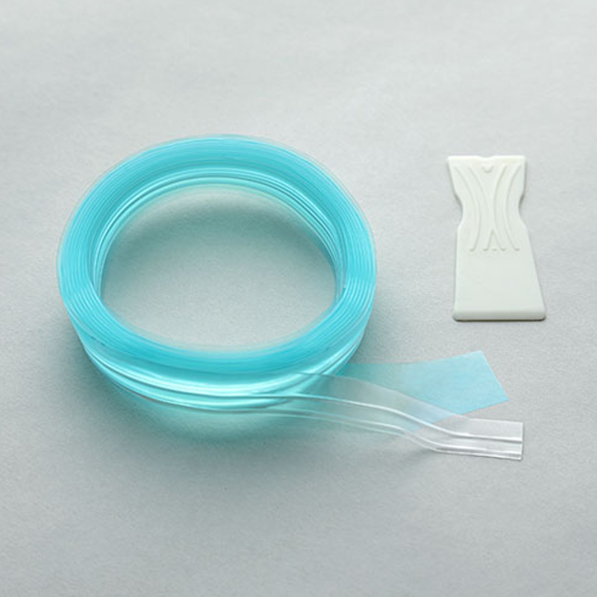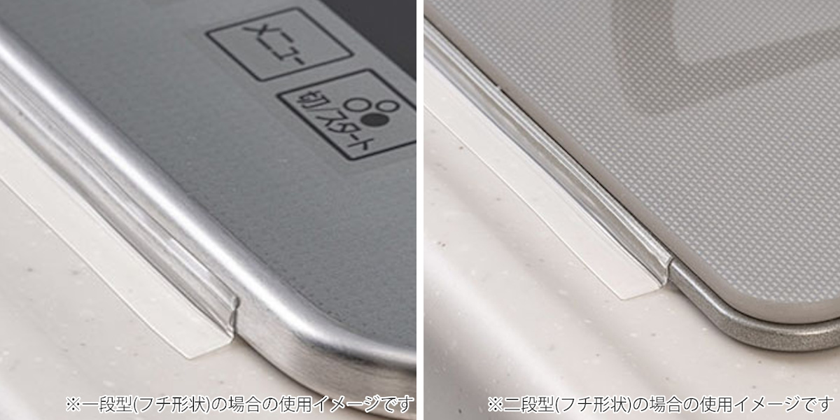 透明のテープなのでキッチンに自然に溶け込み、目立たずカバーしてくれます。ゴムのように柔軟性のある素材と機能的な形状で、コンロのフチが一段型・二段型どちらでもぴったりフィットしやすく、きれいに貼り付けることができます。