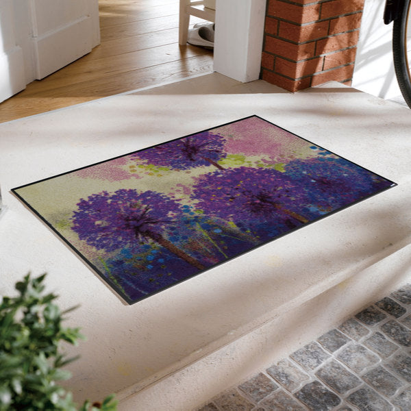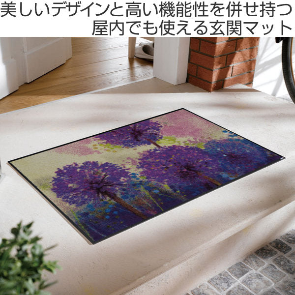 大輪の花をモチーフに、落ち着いたカラーでまとめたシックでモダンなデザインです。上品で華やかな空間づくりにおすすめです。お気に入りのマットを敷いて、帰りたくなる玄関を演出します。