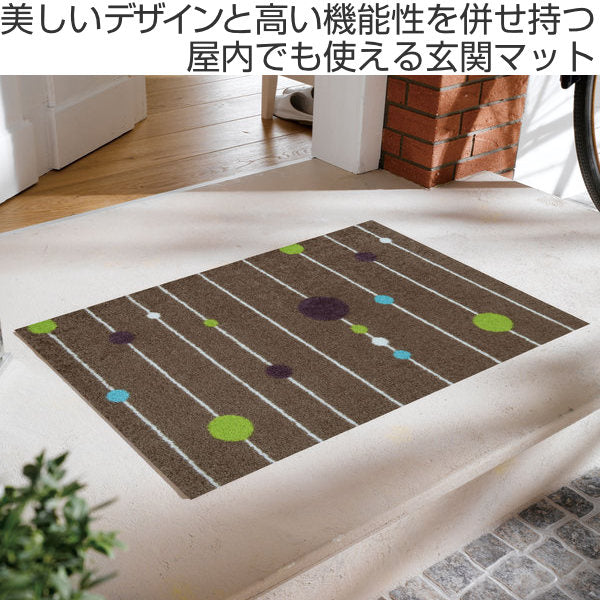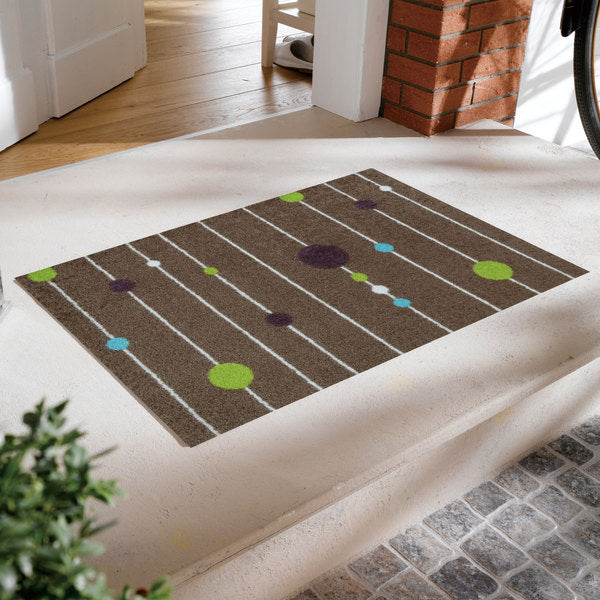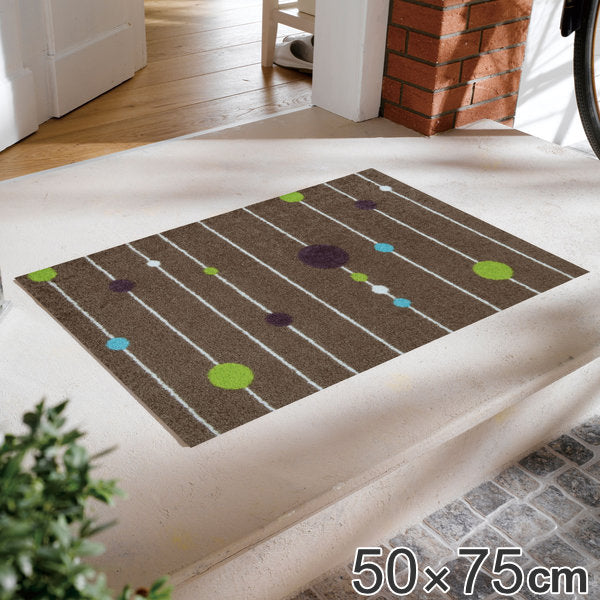 玄関マット 50×75cm 厚さ 6mm 屋内兼用 wash+dry Circles on Lines brown