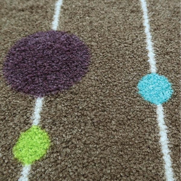 シンプルなストライプ柄に丸をリズミカルに配置した、ポップで楽しい雰囲気のデザインです。落ち着いた色味でまとめられた中で、差し色の丸がアクセントになっています。お気に入りのマットを敷いて、帰りたくなる玄関を演出します。