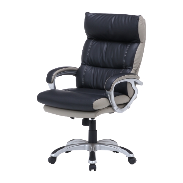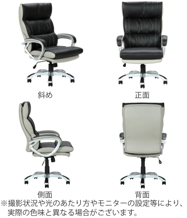 高級感溢れるレザー調の生地を採用したチェアです。シンプルなデザインなので在宅ワーク用チェアとしてご自宅でもご使用いただけます。