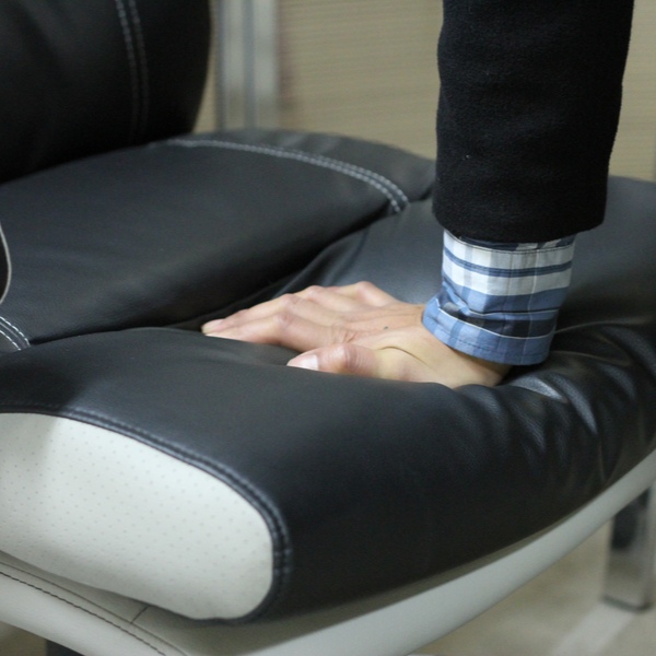 背部にはシリコンフィルを贅沢に使用しています。ふんわりと弾力のある素材なので腰や背中に負担がかかりません。また、レザー調の生地は汚れに強く、お手入れも簡単です。