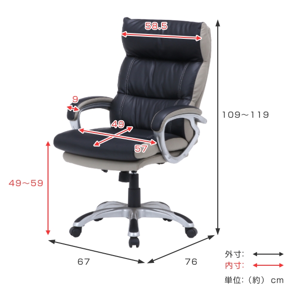 オフィスチェア 座面高49~59cm レザー調 高さ調整 アームレスト ハイバック ポケットコイル 疲れにくい デスクチェア