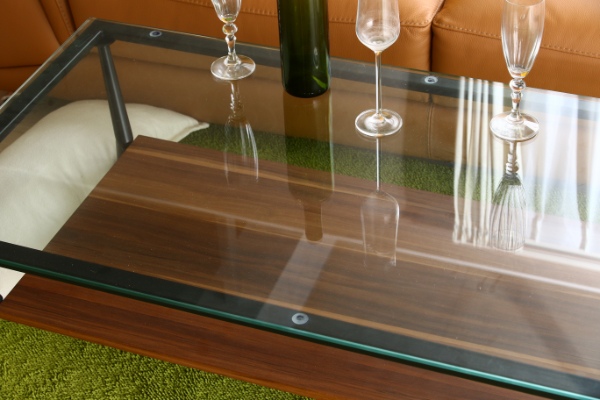 異素材を組み合わせたスタイリッシュなガラステーブル