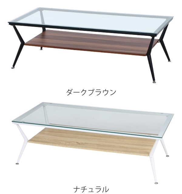 透明感のある美しいガラス天板を使用したシンプルでモダンなガラステーブルです。ガラスの天板、金属の脚部、化粧繊維版の棚板と異素材を組み合わせたスタイリッシュなデザインがおしゃれな空間を演出します。