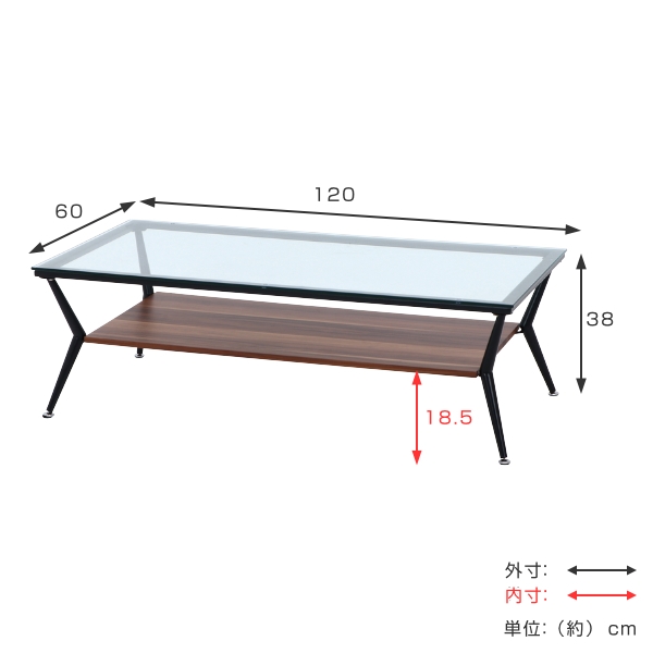 ガラステーブル 幅120cm ガラス テーブル スチール 収納 ラック 強化ガラス センターテーブル
