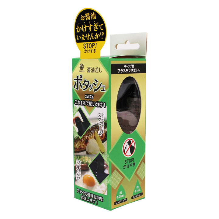 1ドリップ約0.08ml、1プッシュで約0.1ml出ます。少量でまんべんなくかけることができるので、醤油のかけ過ぎを防ぎます。