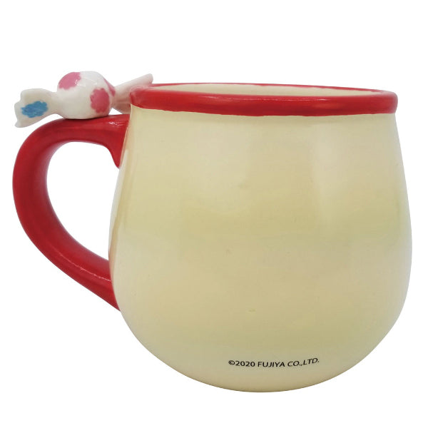 ペコちゃんらしさあふれる、ポップなデザインの磁器製マグカップです。ぷっくりとしたまるいフォルムと明るいカラーリングが特徴で、持ち手に付いたミルキーキャンディーのフィギュアが、デザインのポイントになっています。