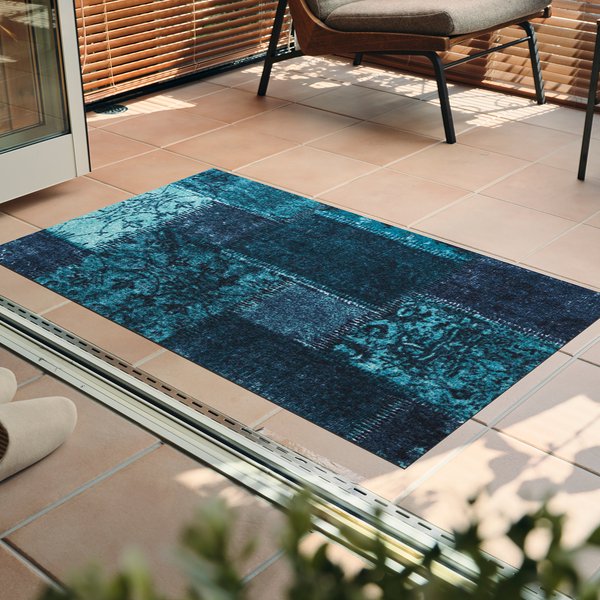 ブルーを基調とした様々な柄を継ぎ合わせたパッチワーク風のデザインです。爽やかなブルーが印象的で、空間を明るくしてくれます。お気に入りのマットを敷いて、帰りたくなる玄関を演出します。