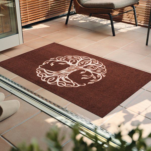 玄関マット 75×120cm 厚さ 6mm 屋内兼用 wash+dry Tree of Life Reddish Brown