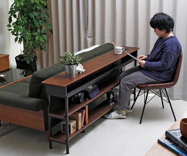 お部屋のデッドゾーンを活用できるスリムなラックです。ソファーの後ろに置いたり、椅子をセットにして、ちょっとしたテーブルのように使うことも出来ます。※モデル身長:150cm