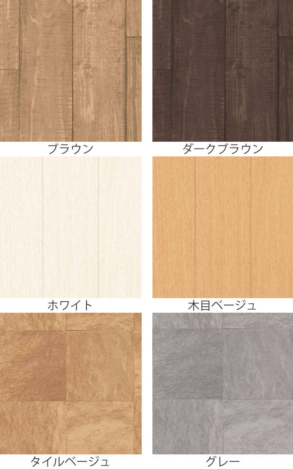 | 種類 | ブラウン、ダークブラウン、ホワイト、木目ベージュ、タイルベージュ、グレー、ブラック、柄タイルグレー、木目 |
