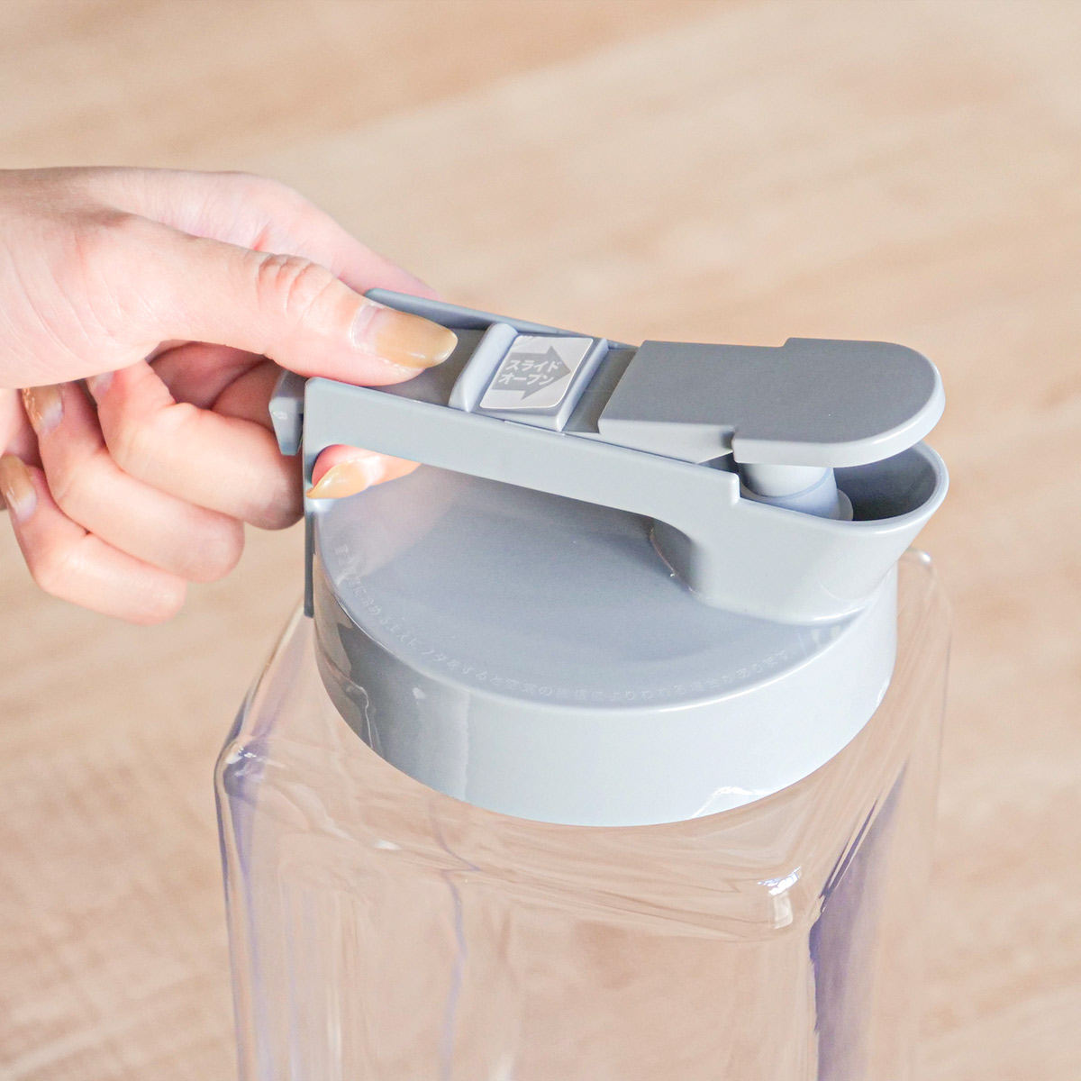 開閉レバーをスライドして押し上げれば簡単に開けることができます。最後までカチッと押し上げたらしっかりロックされるので、フタが下がってくることなくスムーズに注ぐことができます。
