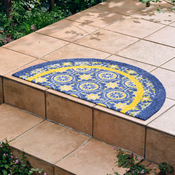 半円形が特徴的な玄関マットです。北欧らしい色柄で、パッと明るい雰囲気にしてくれます。お気に入りのマットを敷いて、帰りたくなる玄関を演出します。