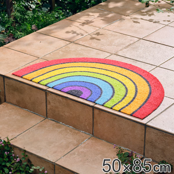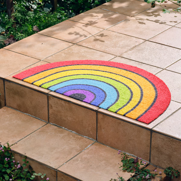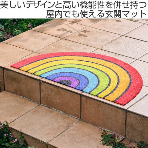 半円形を活かしたレインボー柄で、明るく楽しい雰囲気です。空間をポップに飾る個性的なタッチが魅力です。お気に入りのマットを敷いて、帰りたくなる玄関を演出します。