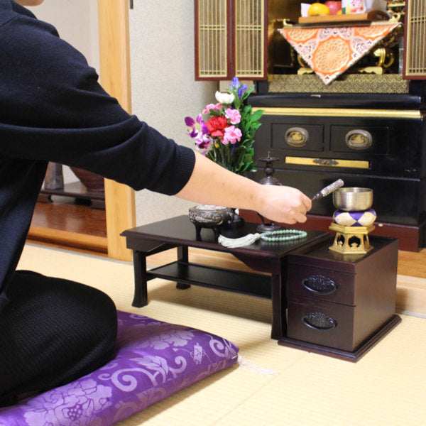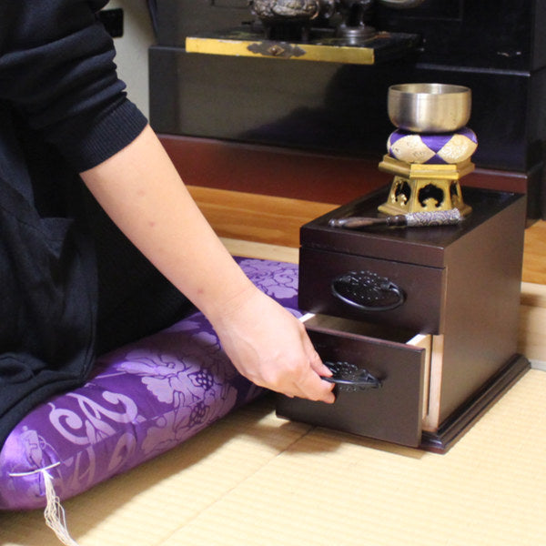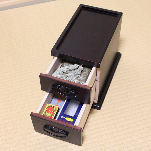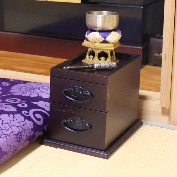 仏壇横の整理にピッタリな和風のミニチェストです。使い勝手のいい大きさと和室に馴染むデザインです。