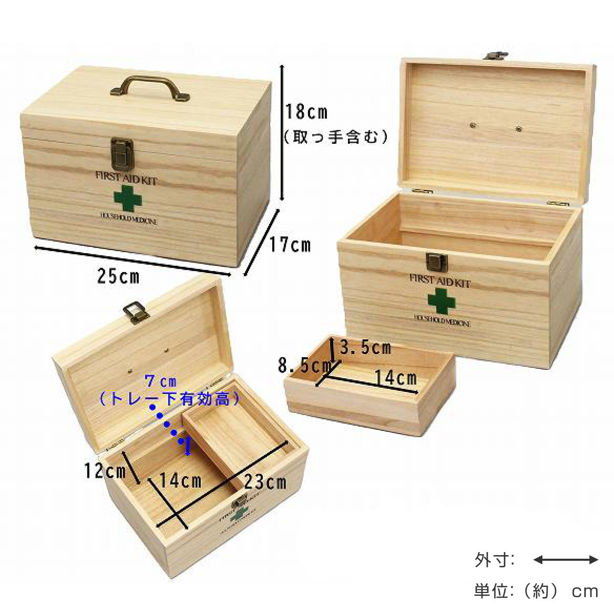 救急箱 天然木 仕切り トレー 桐