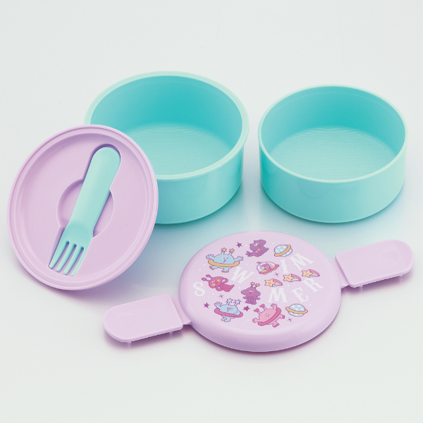 丸型のシンプルなお弁当箱です。2段式なのでおかずとご飯をしっかりと分けて入れることができます。総容量は500mlで幼稚園や小学校のお子様におすすめのサイズです。蓋・中蓋・ミニフォークを外せば電子レンジ対応なので、ランチタイムに温かいご飯が食べられます。