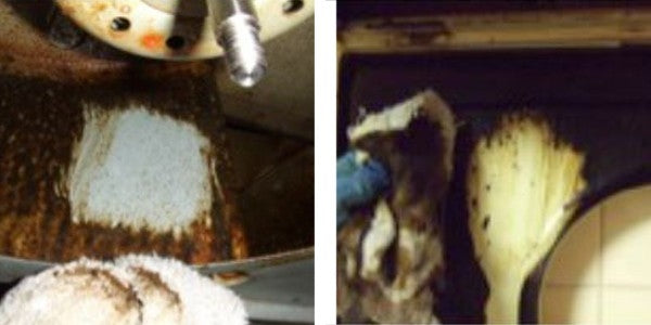 ※放置された油は劣化してレンジフードの塗装を傷め、剥がれやすくなっています。商品自体が塗装を剥がしてしまうわけではありません。
