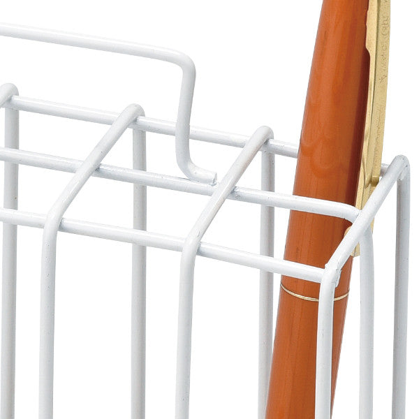 底の部分にはくぼみがあるので、文房具がずれ落ちることもありません。また、格子目の差し口なのでペンが倒れず、隣に立てたペンや定規と絡まらないから、取りやすいです。