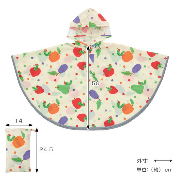 動きやすくて脱ぎ着も簡単、はらぺこあおむしのレインポンチョ