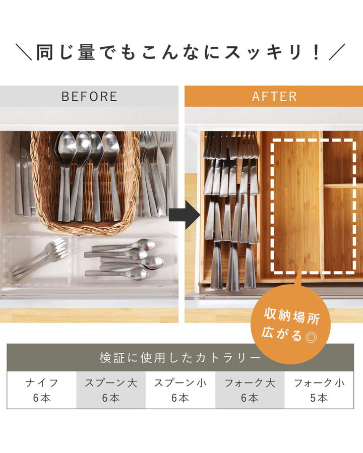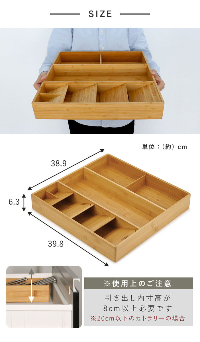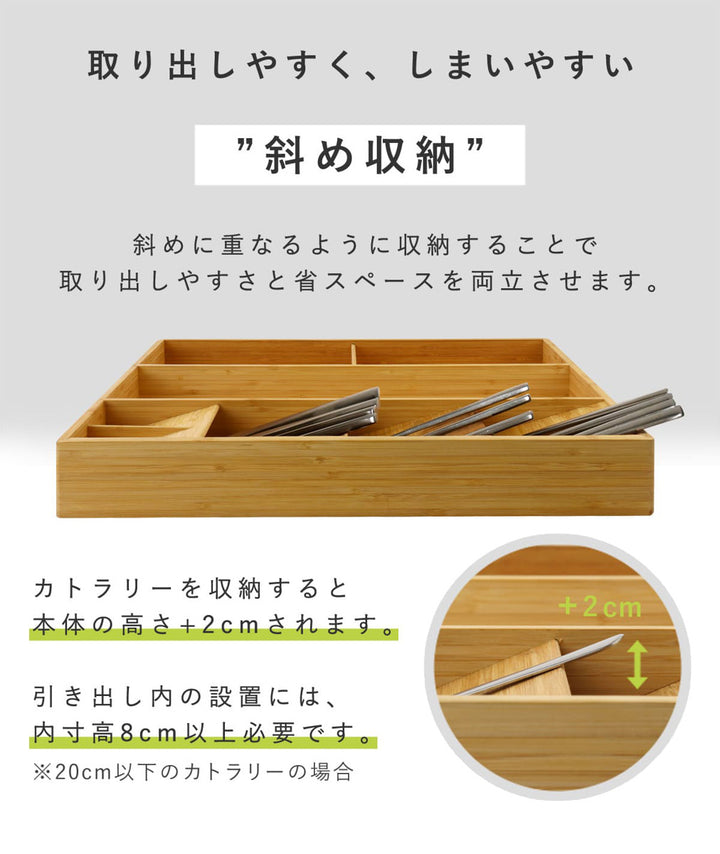 | 注意事項 | ※引き出し内寸高が8cm以上必要です(20cm以下のカトラリーの場合) |