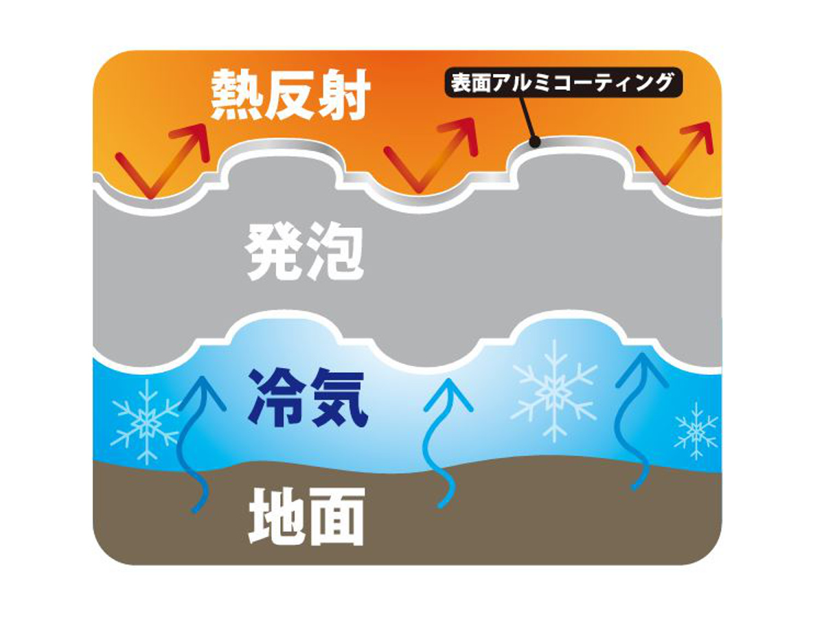 発砲ポリエチレンを使用しているので、断熱性に優れ、地面からの冷気を遮断します。