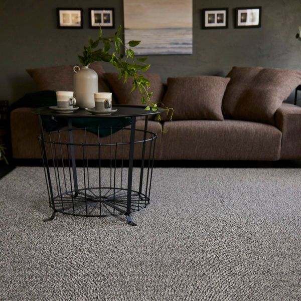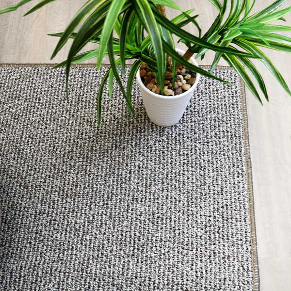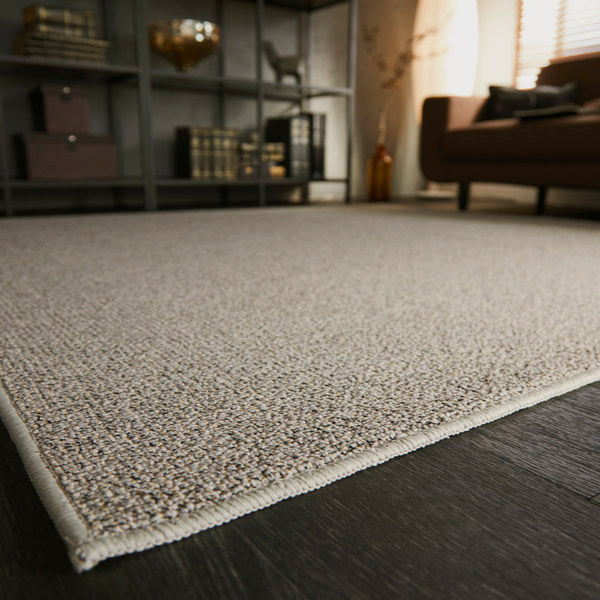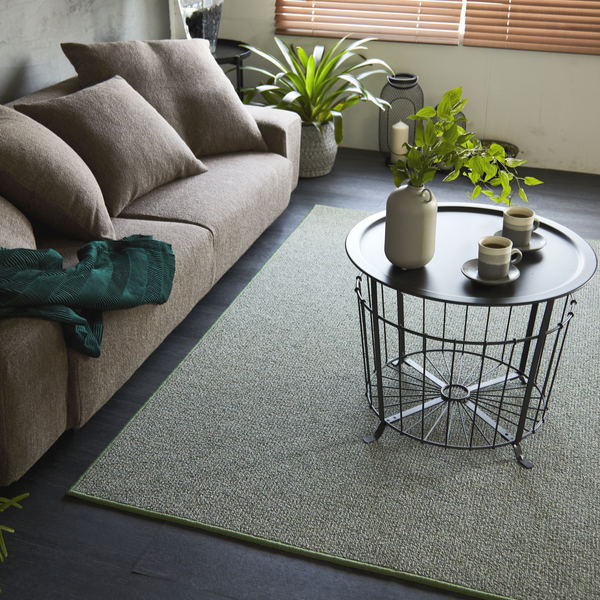 ホテルカーペットのような優れた耐久性のしっかりとした密度と、ランダム感のあるテクスチャーが特徴のラグです。ベースの糸に色が控えめにプラスされており、深みのある印象になっています。