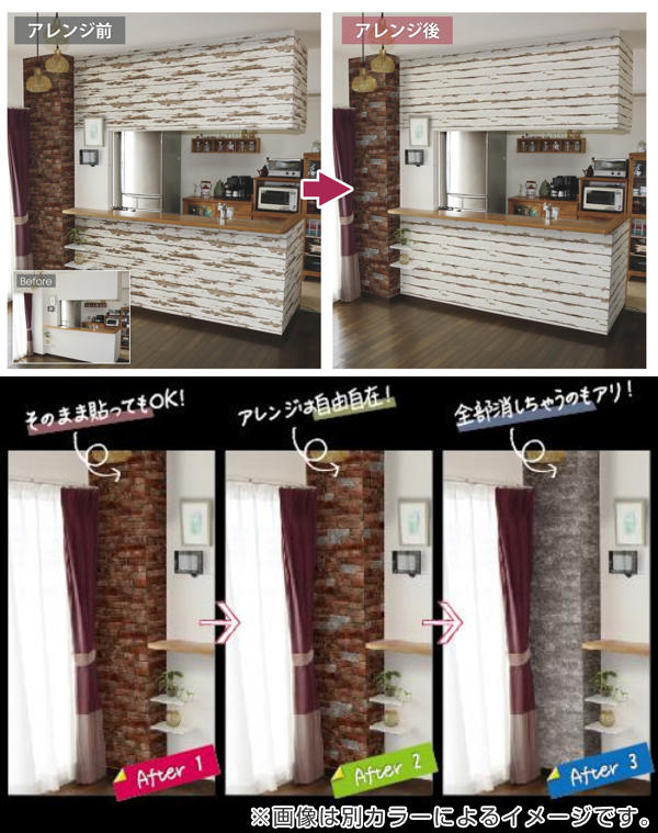 飽きたり汚れたりしたら、裾からめくるだけでキレイにはがすことが出来ます。のりを使用していないため、もとの壁紙を傷めたりのり残りもなく、賃貸の方でも安心してお使い頂けます。