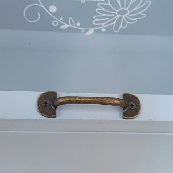 開閉時に便利な取手が付いています。アンティーク調のゴールドで、ケースの雰囲気とよく合っています。