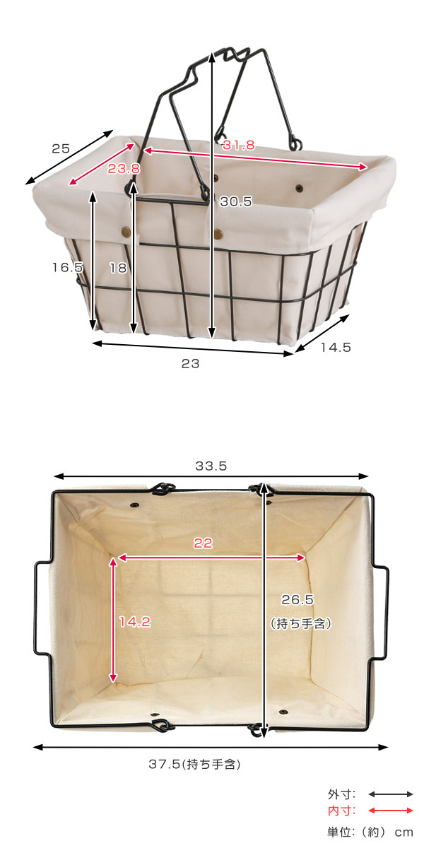 ワイヤーバスケット S 幅33.5×奥行25×高さ16.5cm ファブリック