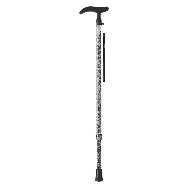 フラットになったグリップが安定感ある伸縮性ステッキです。女性に人気の高い花柄や植物系のお洒落なデザインは、ファッションのアクセントになります。また、SGマーク認定商品なので安心してご使用いただけます。