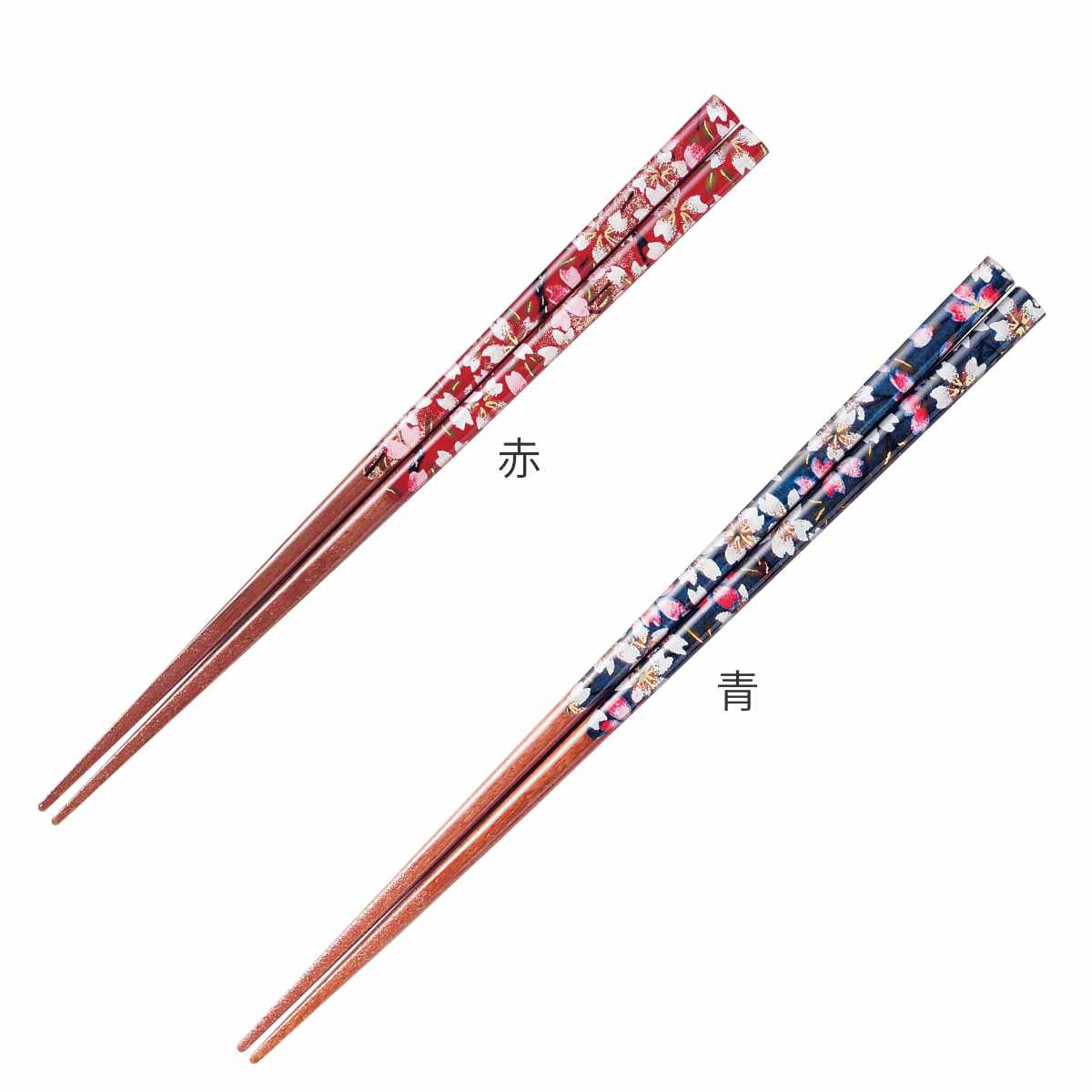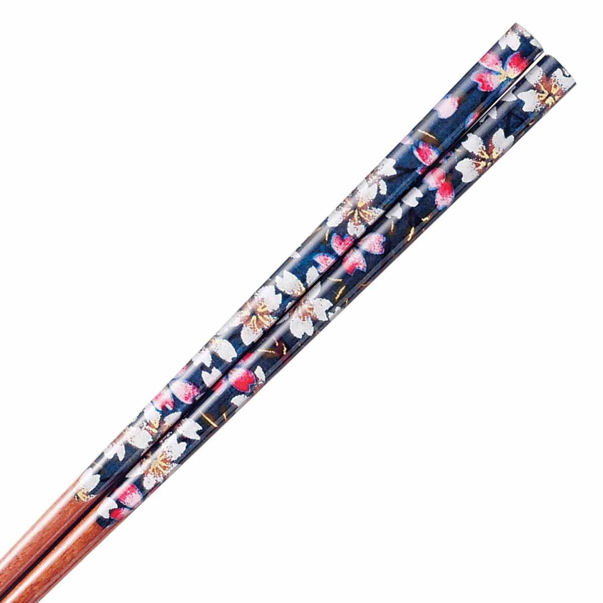 野桜柄が華やかなお箸です。箸先は先角で細く、すべり止めもついているので麺類などもつまみやすいです。色違いのお箸で揃えると、夫婦箸になります。毎日の食事がより豊かになります。